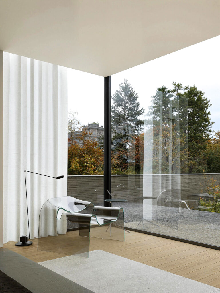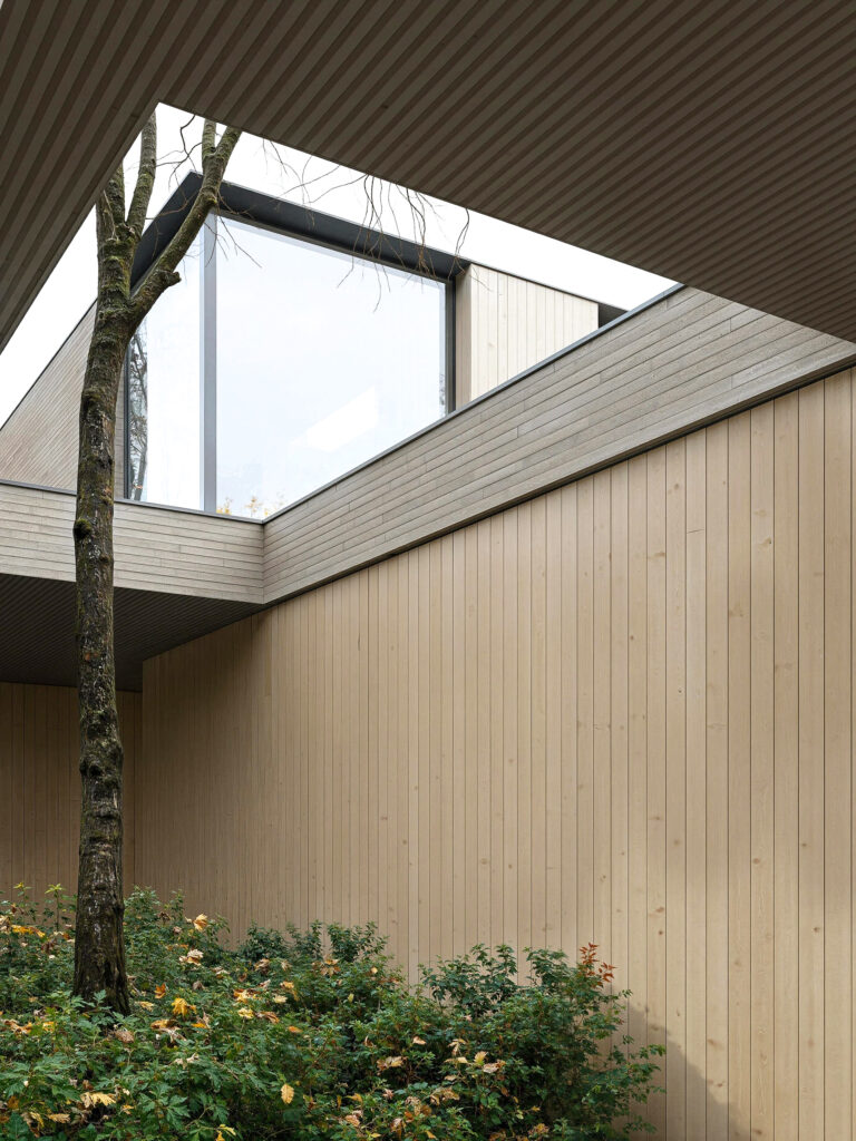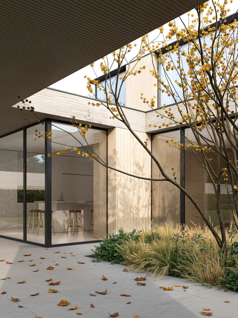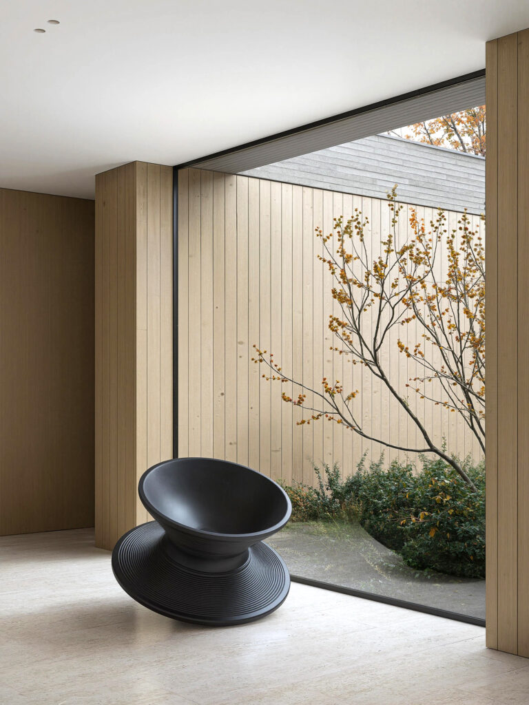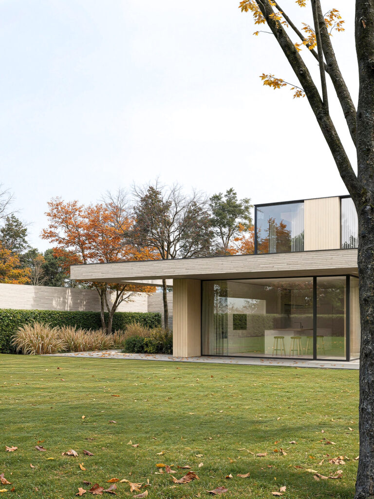 Это современная архитектура, выполняющая функцию защитного щита. Дом оберегает внутренний мир семьи от городского шума, подобно тому как раковина защищает самое ценное содержимое. Снаружи он представляет собой сдержанную, почти монолитную форму из кирпича длинного формата, излучающую надежность и недоступность. Однако внутри он раскрывает утонченную красоту и абсолютный комфорт. Это пространство, где безопасность сочетается с легкостью, а стены становятся не барьерами, а фильтрами между шумным миром и вашим личным покоем.
